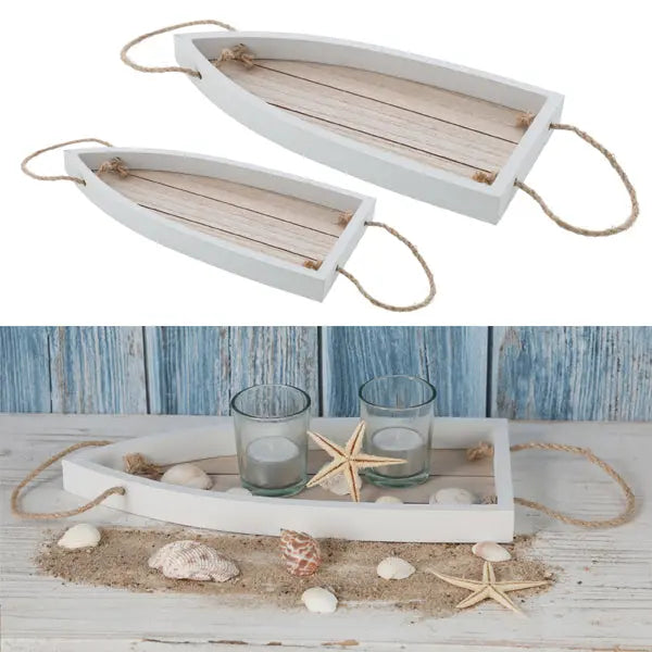 Bringen Sie mit diesen dekorativen Boot-Schalen das Gefühl des Meeres in Ihr Zuhause und verwandeln Sie Ihre Räume in einen eleganten Rückzugsort mit maritimem Charme.