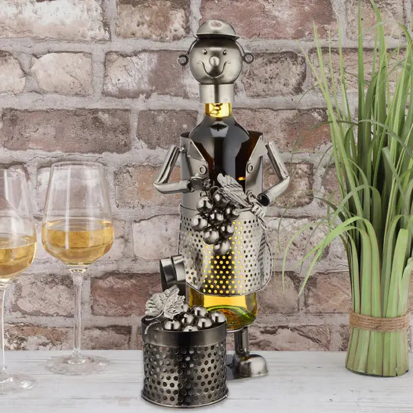 • Detailreiche Gestaltung: Der kunstvoll gestaltete Winzer mit Korb bringt rustikalen Charme in Ihre Küche oder Bar.