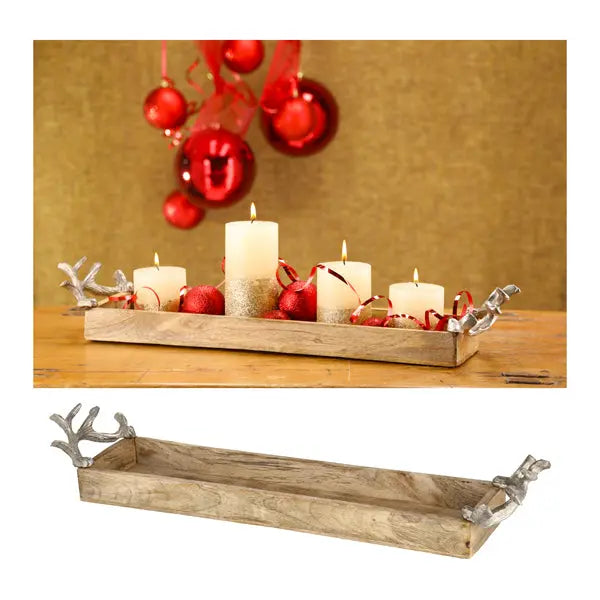 Entdecken Sie das perfekte Serviertablett, das nicht nur funktional, sondern auch ein echter Blickfang ist. Mit seinen stilvollen Geweihgriffen kombiniert dieses Tablett rustikale Eleganz mit praktischer Anwendung.