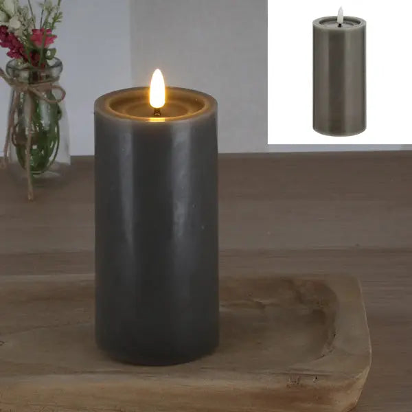 LED-Echtwachskerze 'SHINE', Grau, 7,5x15cm - Stilvolle, flammenlose Beleuchtung