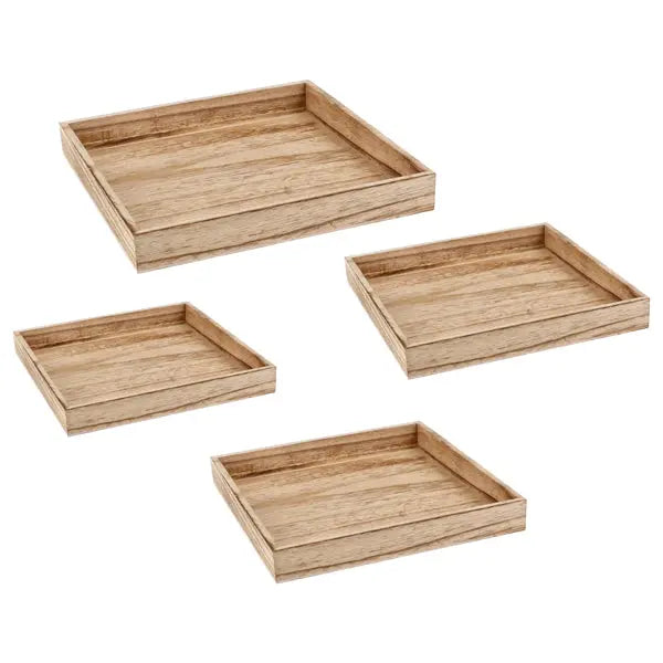 Ob beim Servieren von köstlichen Gerichte oder als stilvolles Dekorationselement, dieses Set quadratischer Holztabletts ist der perfekte Begleiter für jeden Anlass.