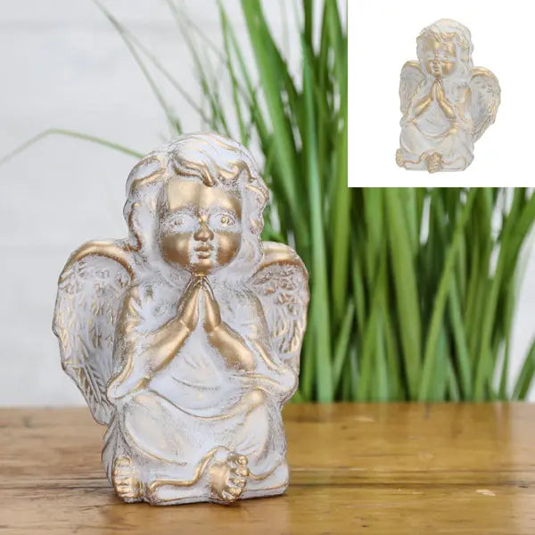 Sitzender Engel, Gold/Weiß, 17cm Hoch, Friedvolle Dekofigur