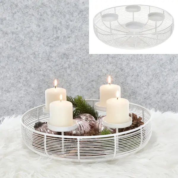 Edler runder Adventskranz-Rahmen in Weiß, Durchmesser ca. 37 cm