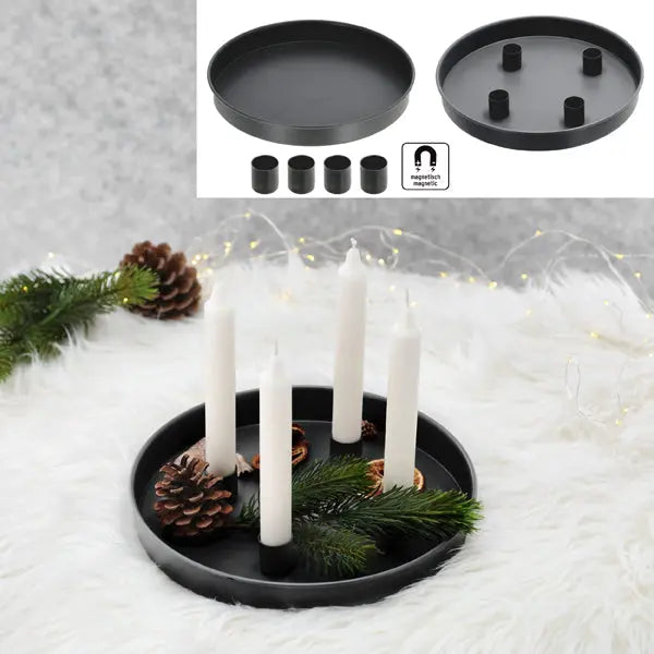 Black tray with 4 magnetic candle holders, 25cm - Elegant Design