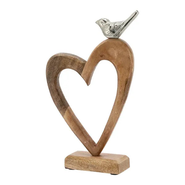 Heart decoration with bird on foot - approx. 26cmH: Playful home accessory for charming accents