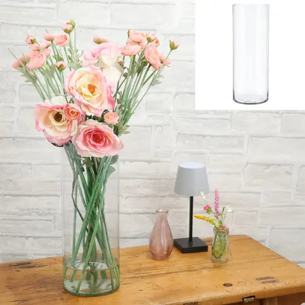Tall Cylinder Glass Vase, Clear & Elegant, 15 cm Diameter, 40 cm High