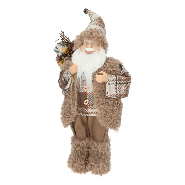 Traditional Santa Claus Figure, Standing, Brown, 47 cm, Cozy Christmas Decoration
