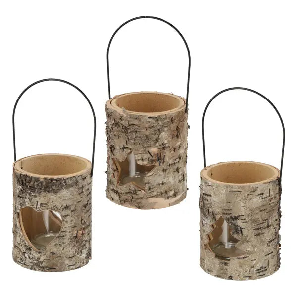 Bark lantern for hanging, set of 3, 13 cm high - Natural candle holders | Unique lights
