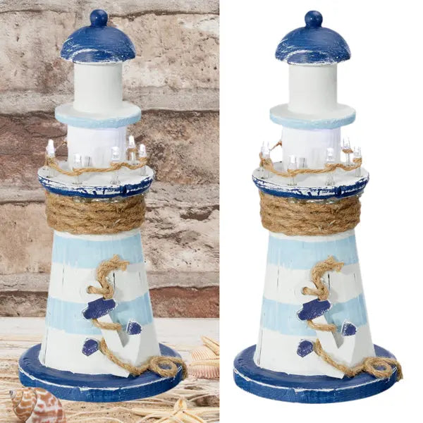 Mała latarnia morska podświetlana diodami LED o wysokości ok. 22 cm jest idealnym dodatkiem do Twoich morskich dekoracji. Posiada jasne oświetlenie LED, które tworzy efekty atmosferyczne i dodaje uroczego akcentu do każdego pomieszczenia. Kompaktowa konstrukcja pasuje do każdego stołu lub półki i idealnie nadaje się do pomieszczeń mieszkalnych, biur lub wydarzeń.