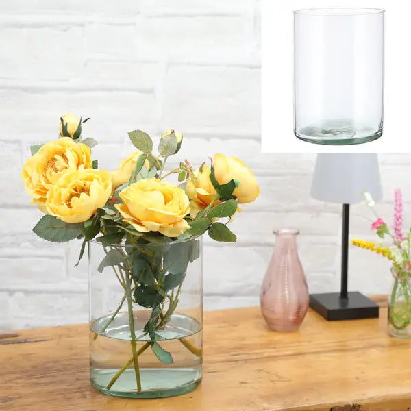 Kompaktowy wazon ze szkła cylindrycznego, przezroczysty, średnica 15 cm, wysokość 20 cm