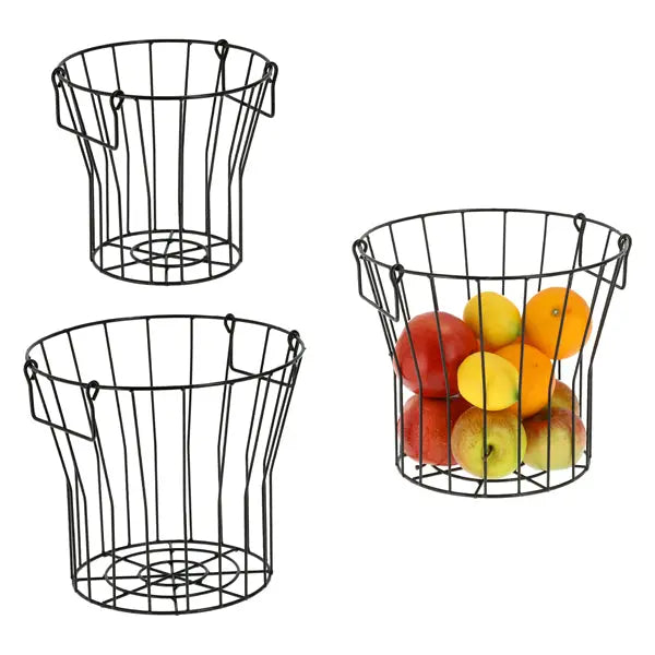 Zestaw metalowych koszy z uchwytem w kolorze czarnym - praktyczne i stylowe rozwiązanie do przechowywania