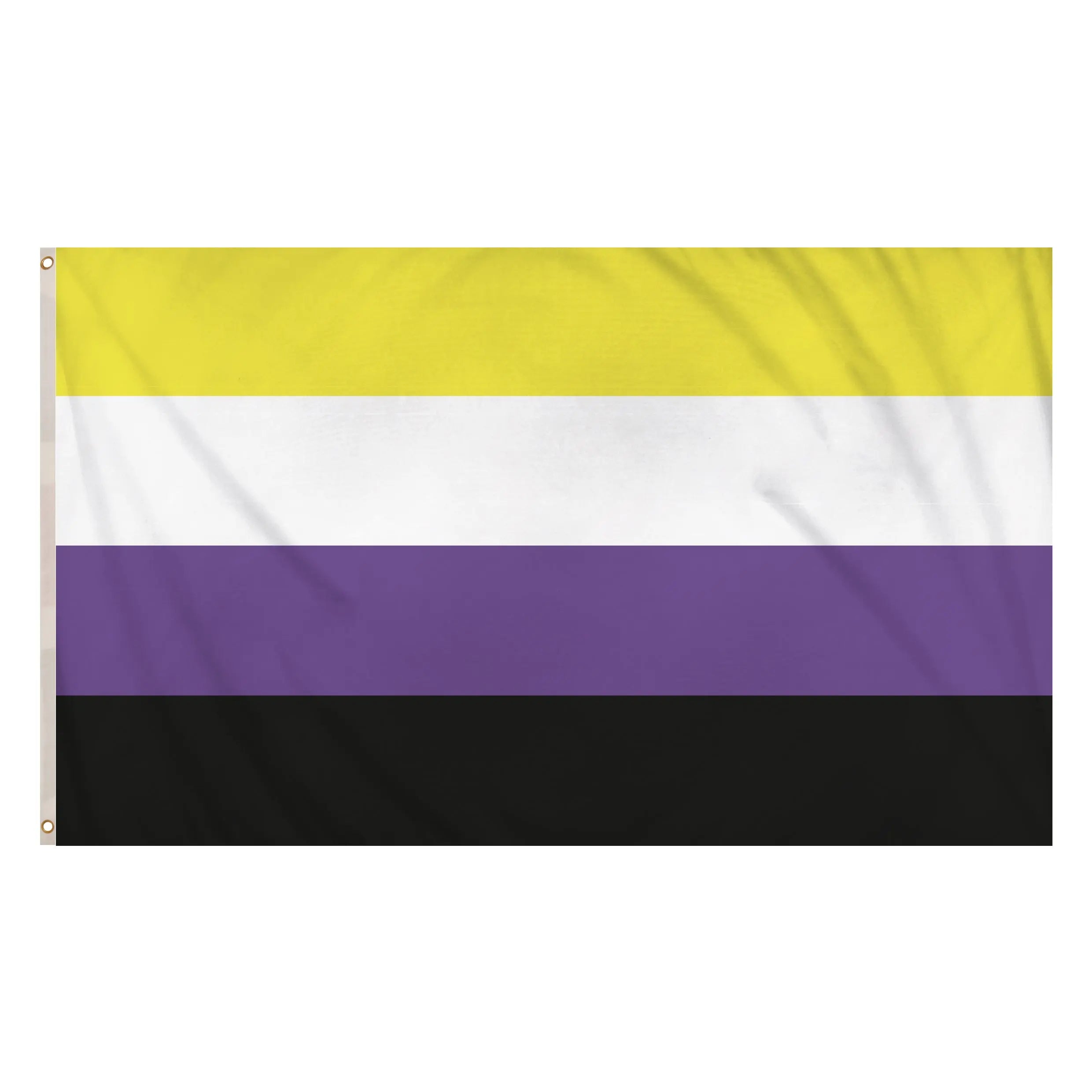 Nasza flaga Non-Binary Pride jest potężnym symbolem uznania i wsparcia tożsamości niebinarnych. Dzięki efektownemu projektowi w kolorach żółtym, białym, fioletowym i czarnym symbolizuje różnorodność i wyjątkowość społeczności oraz stanowi mocny przykład integracji i różnorodności.