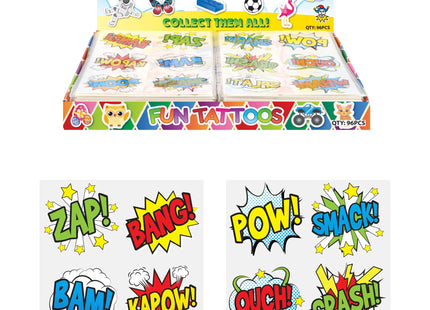 Ożyw imprezę swoich dzieci dzięki naszym tatuażom w stylu mini komiksu. Te tymczasowe tatuaże oferują żywą i zabawną sztukę, która sprawi, że każdy rodzaj imprezy będzie w duchu imprezy. Dzięki dwóm różnym projektom, profesjonalnym projektom i unikalnym tatuażom jest to idealny dodatek dla małych superbohaterów i fanów komiksów.