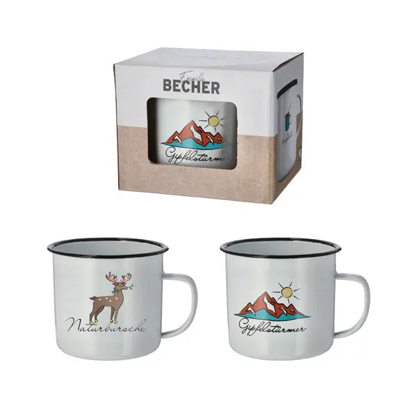 Zestaw 2 kubków emaliowanych „Nature” - rustykalne naczynia dla miłośników spędzania czasu na świeżym powietrzu