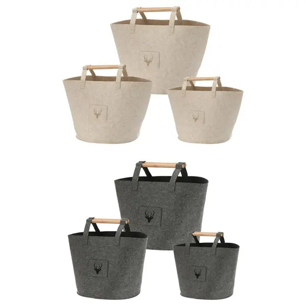 Zestaw 3 okrągłych filcowych koszy do przechowywania w kształcie jelenia | 2 zestawy