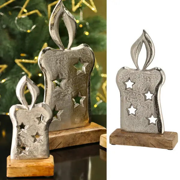 Große Silberne Kerze auf Sockel - Elegante Raumdekoration, ca. 26cm Höhe