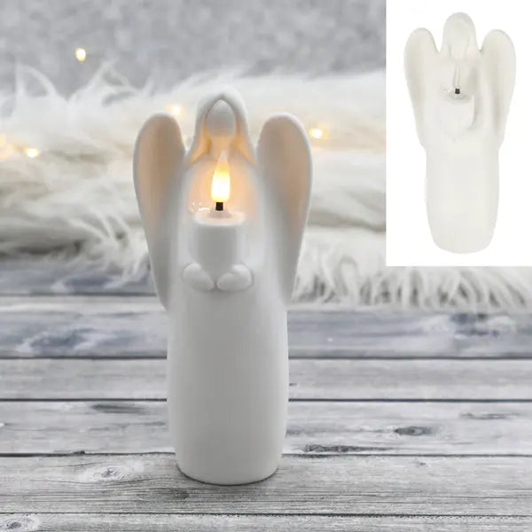 Großer Weißer LED-Engel, ca. 18cmH - Beleuchtete Dekoration für Festliche Akzente