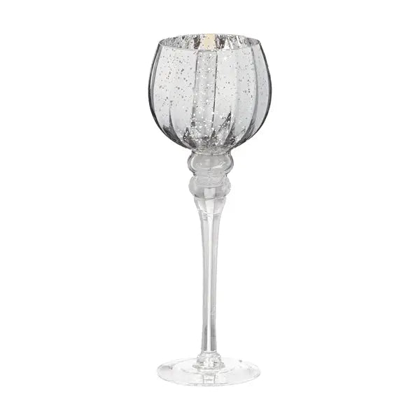 Großes Windlicht auf Fuß in Silber, Höhe ca. 30cm