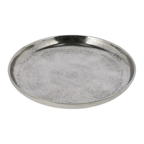 Klein, aber elegant: Der Dekoteller aus silberfarbenem Aluminium bringt einen Hauch von Raffinesse in jeden Raum.