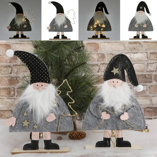 LED Weihnachtsmann aus Filz auf Holzsockel, 2er-Set, ca. 37cmH - Festliche Dekorationsfiguren