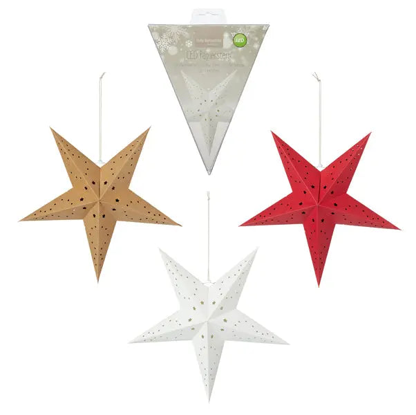 Leuchtender LED Papierstern mit Timer | 40cm | Weihnachtsdekoration | 3 LED | Energiesparend