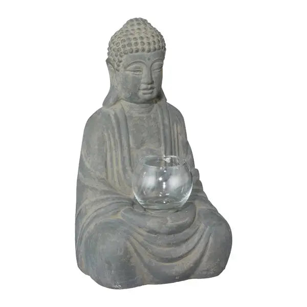 Sitzender Buddha mit Windlicht, ca. 28 cm, dekorative Figur, ideal für Garten und Wohnbereich
