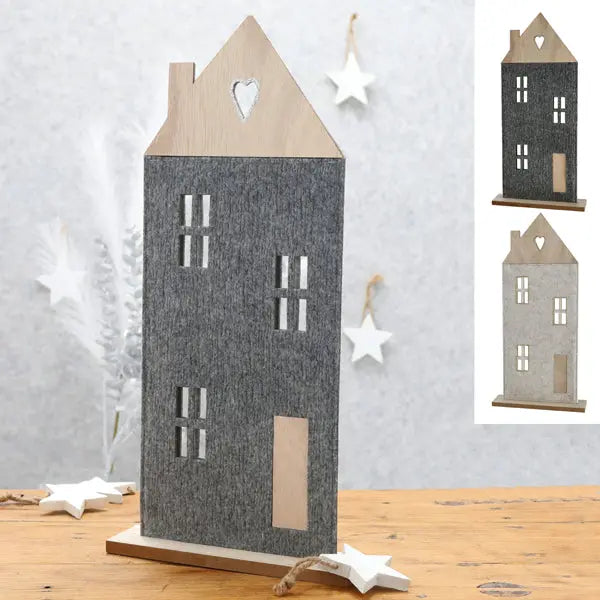Stilvolle Filz-Haus Aufsteller auf Holzfuß, 51cm Höhe, 2er Set - Elegante Wohnaccessoires