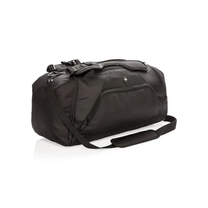 Wählen Sie die Swiss Peak Schwarz RFID Wochenend-Rucksacktasche und erleben Sie die Kombination aus Funktionalität, Sicherheit und Stil, die Ihre täglichen Aktivitäten erleichtert!